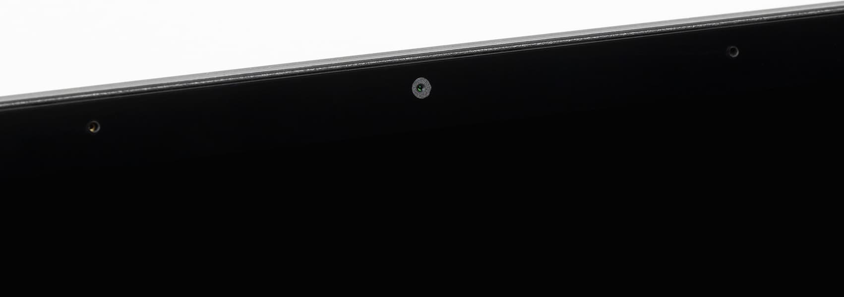 В верхнюю часть рамки дисплея встроены HD-видеокамера и два микрофона с функцией шумоподавления.