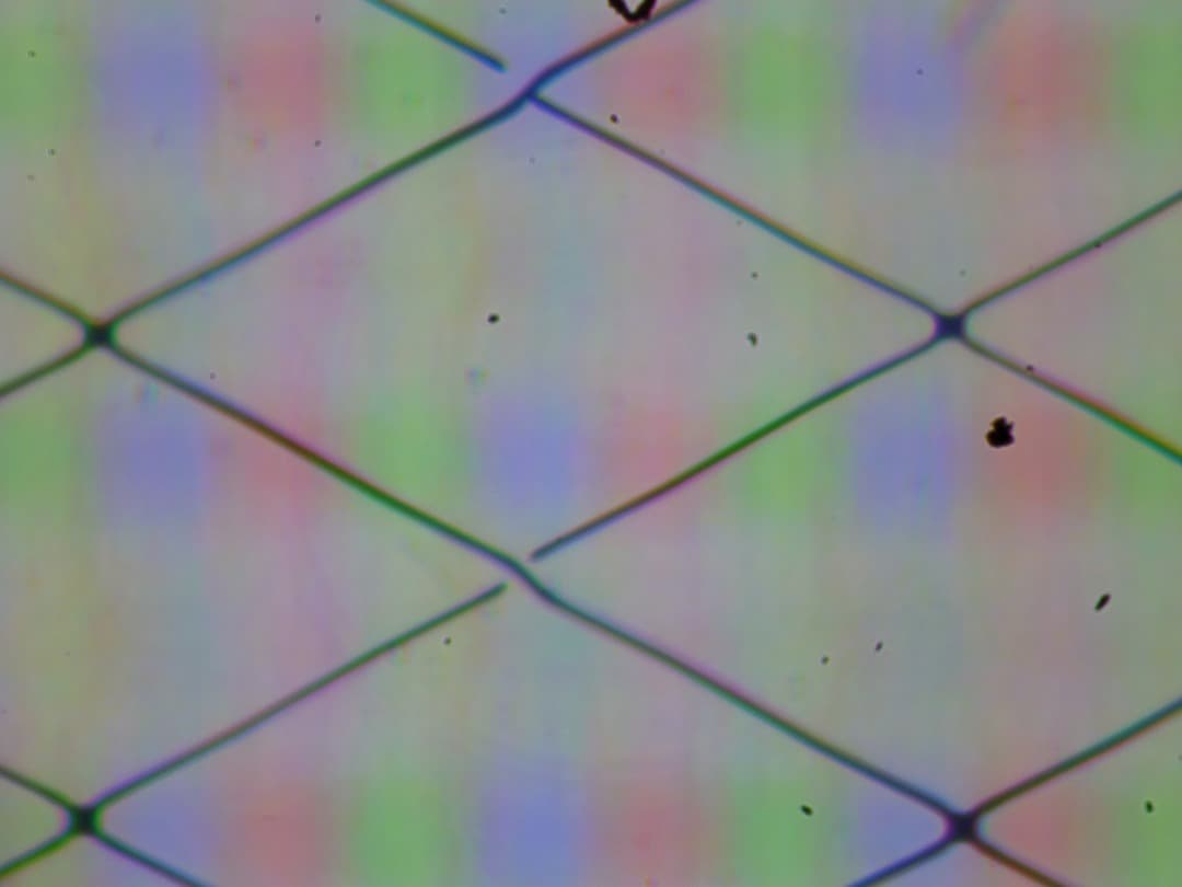 Фокусировка уже практически на поверхности экрана выявила проводники системы емкостного сенсора прикосновений: