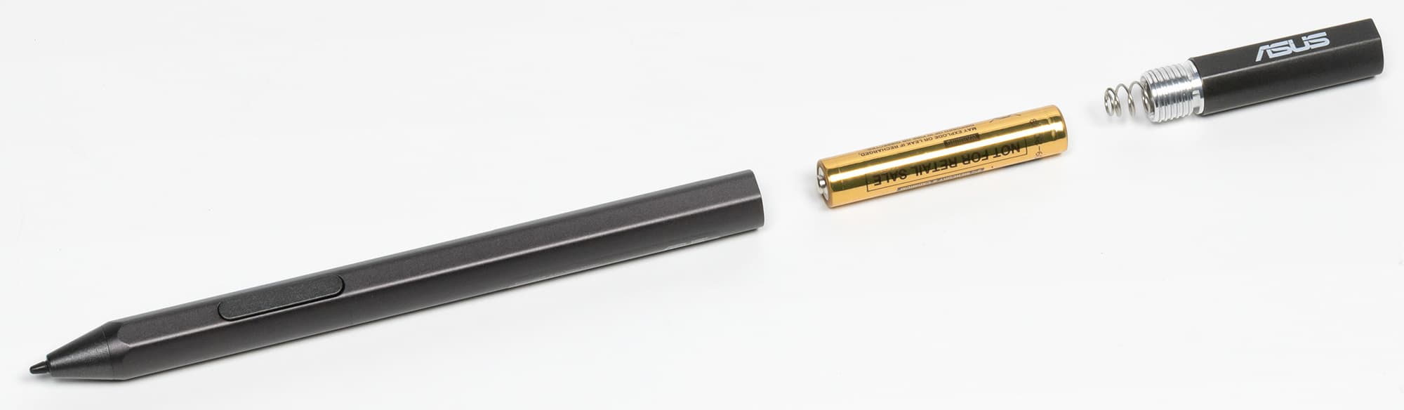 Комплект поставки непривычно широкий для ноутбуков последнего времени. В него включены мягкий кожаный конверт, переходники-адаптеры USB-A → RJ45 и USB-C → аудиоразъем, стилус Asus Pen (4096 уровней давления от 10 до 300 г), адаптер питания и инструкции.