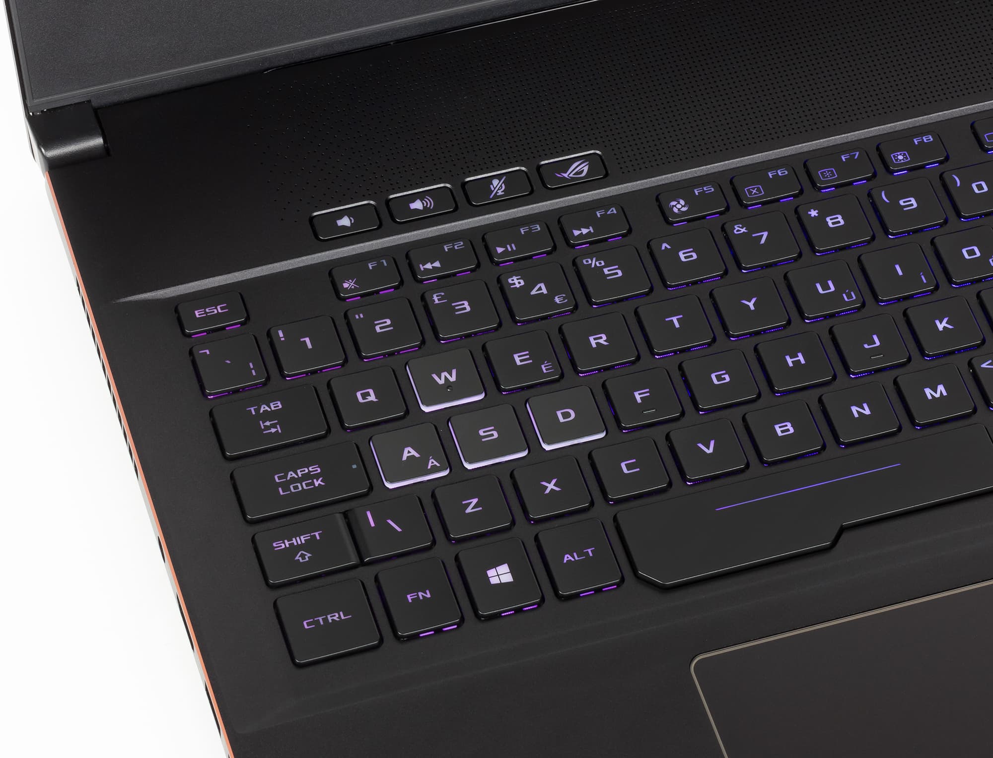 В ноутбуке Asus ROG Zephyrus M GM501GM используется клавиатура мембранного типа с увеличенным расстоянием между клавишами. Ход клавиш составляет 1,7 мм, размер клавиш — 15,5×15,5 мм, а расстояние между ними — 3 мм. Усилие нажатия на клавиши составляет 57 г, а остаточное усилие отщелкивания клавиши — 27 г.