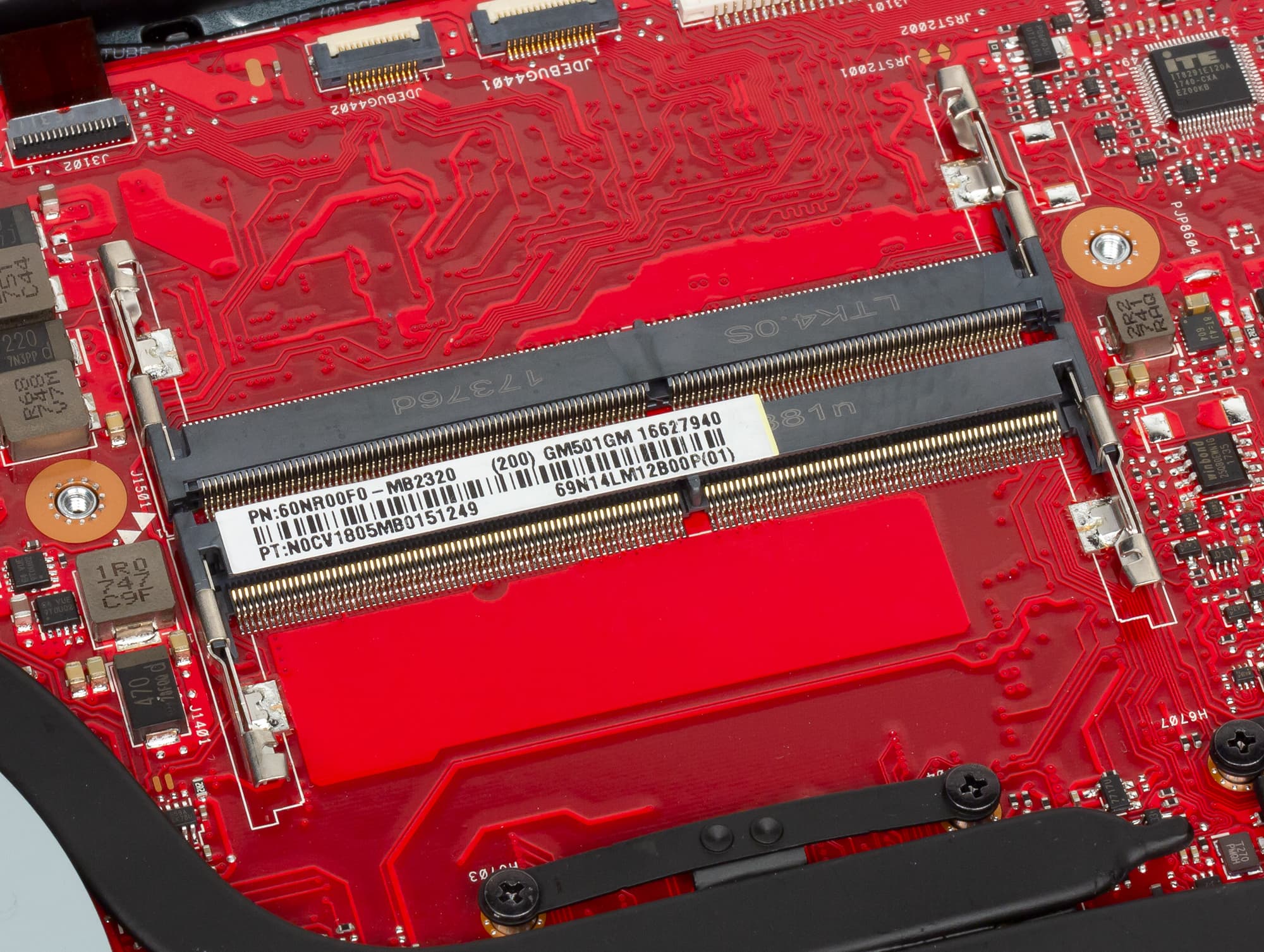Для установки SO-DIMM-модулей памяти в ноутбуке предназначено два слота.