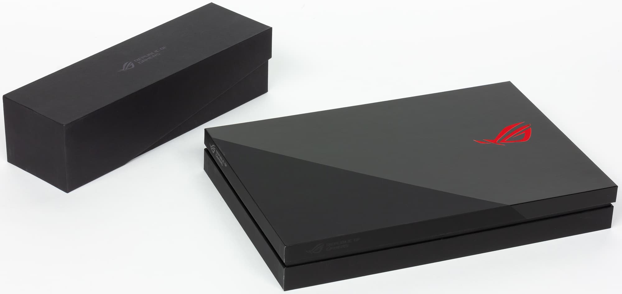 Ноутбук Asus ROG Zephyrus M GM501GM поставляется в большой невзрачной картонной коробке черного цвета с ручкой.