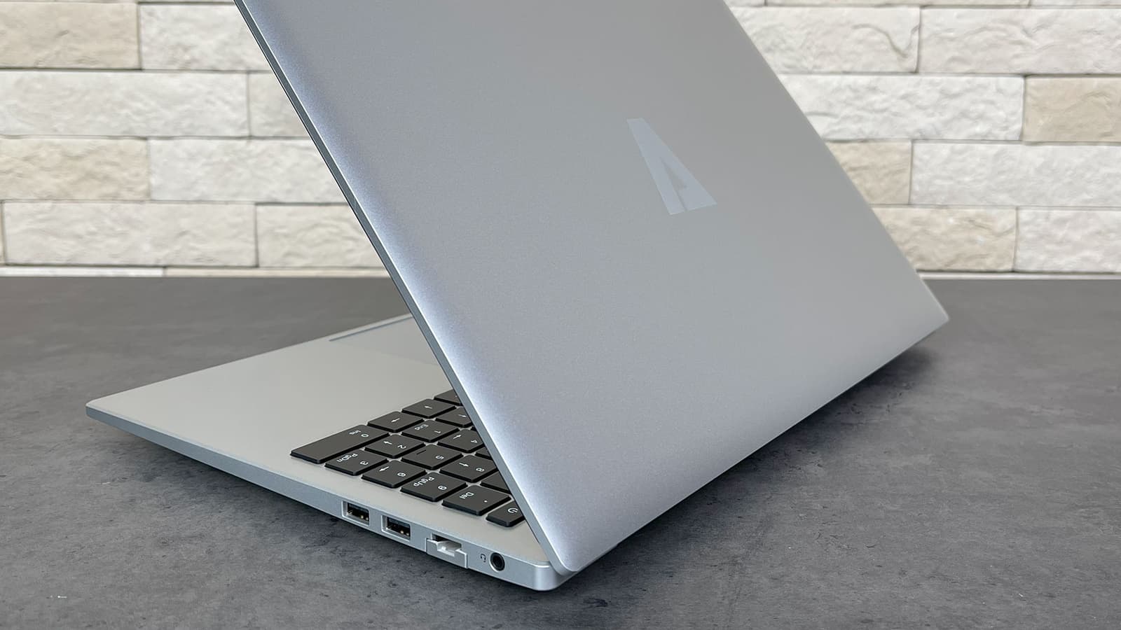 Ноутбук обладает 16-дюймовым экраном — чуть более крупным, чем широко распространенные 15,6-дюймовые. К тому же соотношение сторон дисплея составляет 16:10, это удобнее в работе, но экран крупнее и по высоте, так что внешне машина отнюдь не выглядит малюткой. На лицевую сторону крышки в центре нанесен логотип Azerty. При работе он не подсвечивается.