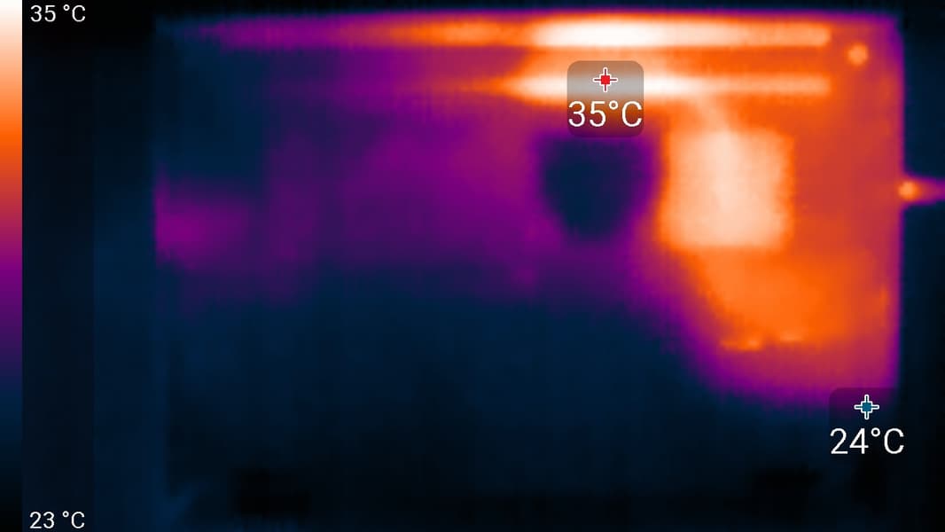 Под максимальной нагрузкой работать с клавиатурой не совсем комфортно, так как существенно нагревается место под левым запястьем. Держать ноутбук на коленях также неприятно, поскольку нагрев днища левое колено очень хорошо чувствует. Блок питания греется не очень сильно, но все равно при долговременной работе с большой производительностью лучше следить, чтобы он не был ничем накрыт.