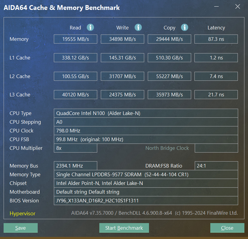 | Процессор | Intel N100 (Alder Lake-N): 4 ядра/4 потока 0,1/3,4 ГГц, TDP 6 Вт, Tjmax 105 °C | |