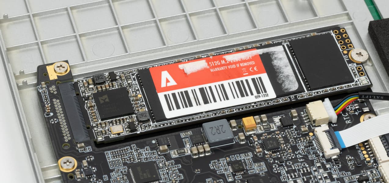 Системный накопитель представлен SSD с интерфейсом SATA и обладает вместимостью 512 ГБ.