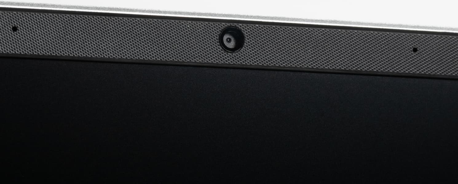 В верхнюю часть рамки встроена миниатюрная веб-камера (720p) с двумя микрофонами. Механической шторки нет.