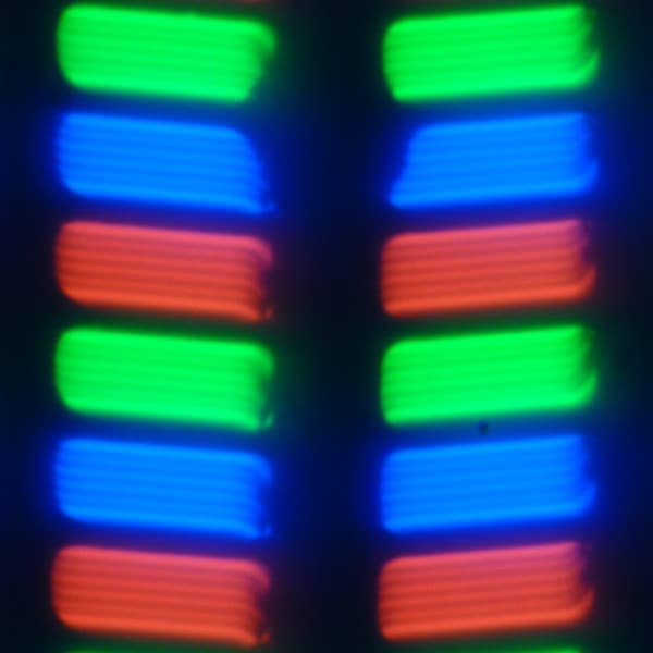 В данном планшете используется матрица типа IPS. Микрофотографии демонстрируют типичную для IPS структуру субпикселей: