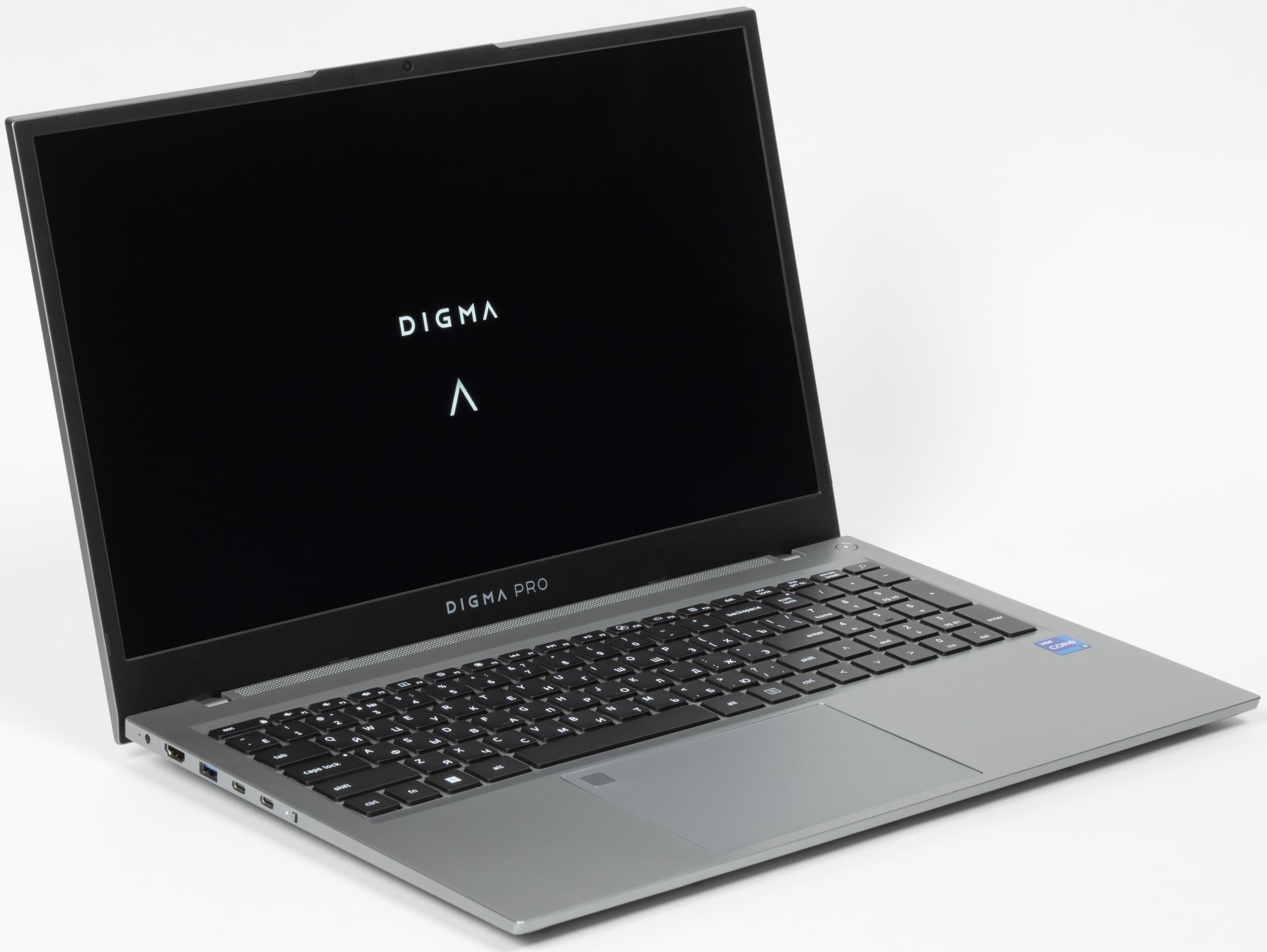 Мы тестировали ноутбук, который на сегодня можно назвать старшим в линейке: Digma Pro Fortis M (DN17P7-ADXW01, ID 1986642) с процессором Intel Core i7-1255U 12-го поколения, ОЗУ объемом 16 ГБ и накопителем на 512 ГБ, на момент публикации обзора он предлагался по цене 65-70 тысяч рублей. Его полная спецификация выглядит так: