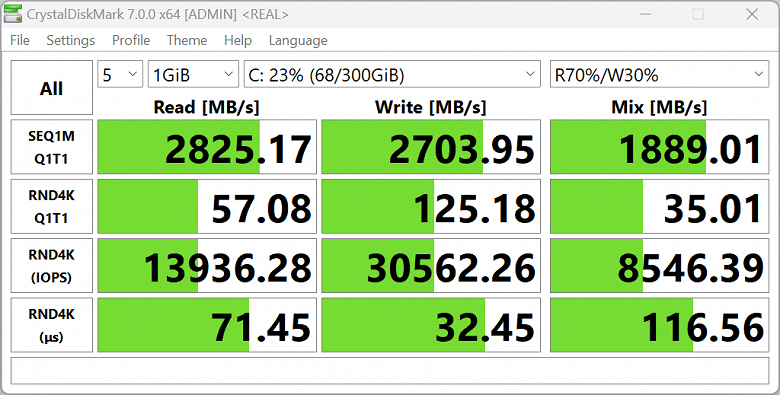 Предлагаем сравнить с результатами тестов еще двух SSD — Yangtze Memory PC300-1TB-B PCIe 4.0 ×4 (ноутбук Honor MagicBook Pro 16 DRA-54) и Western Digital PC SN540 512 ГБ PCIe 3.0 ×4 (Maibenben P625).