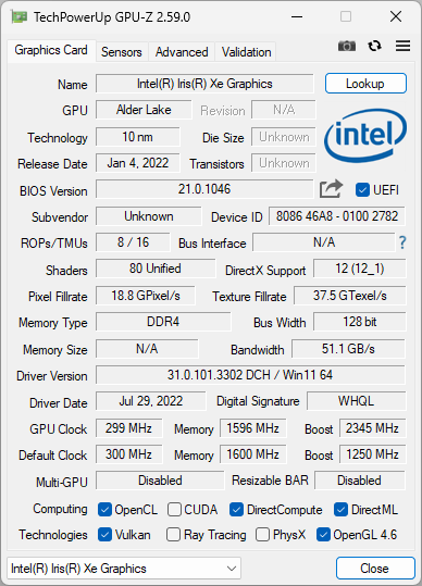 | Видеоподсистема | интегрированная графика Iris Xe Graphics | |