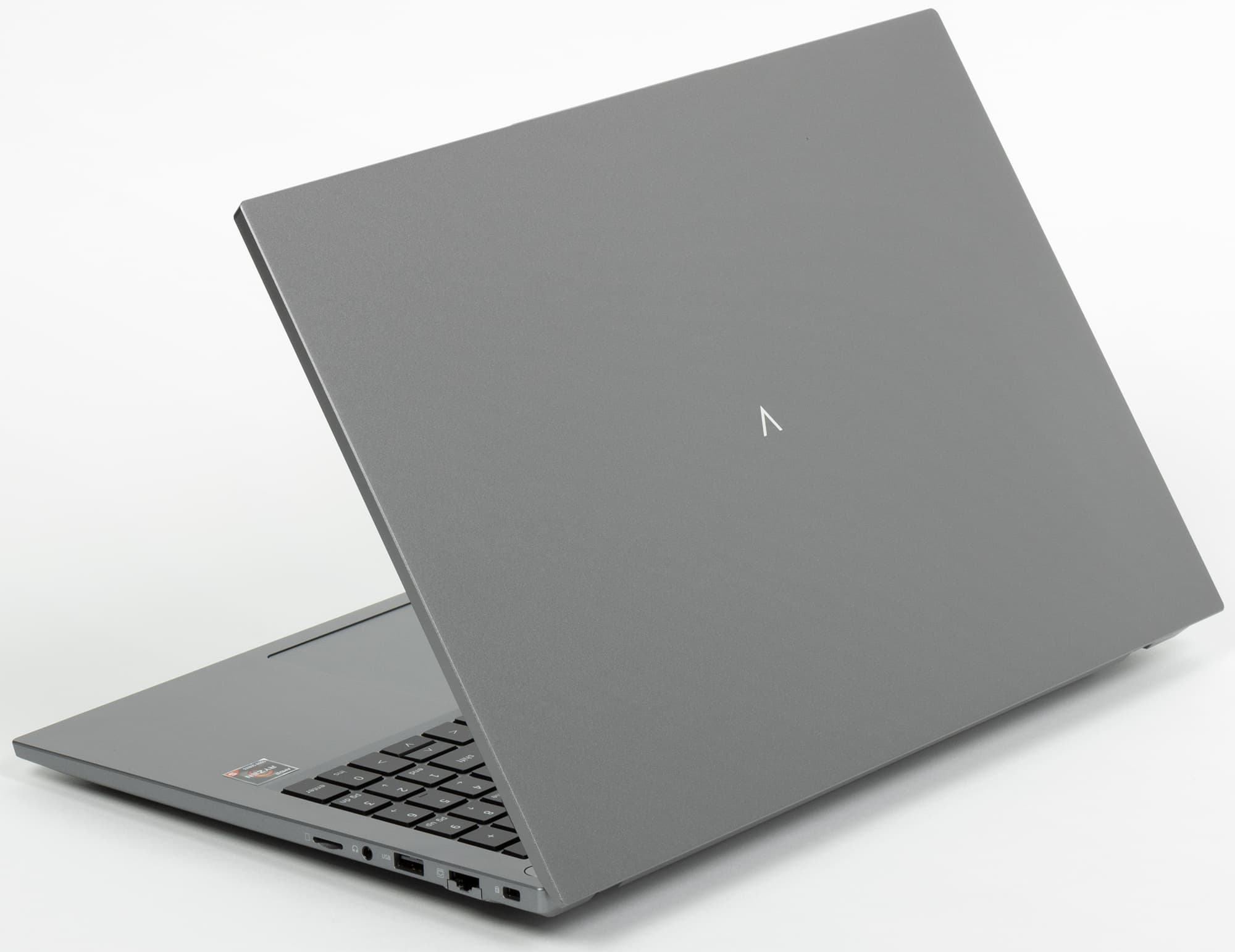 Ноутбук обладает достаточно большим 15,6-дюймовым экраном, поэтому он не мог получиться по-настоящему компактным. Его ширина и глубина составляют 360×243 мм, толщина в передней части — 21 мм, в задней — 29 мм (20 мм без учета опор). Вес не велик и не мал: 1,56 кг — это, конечно, ощутимо, но не слишком отягощает.