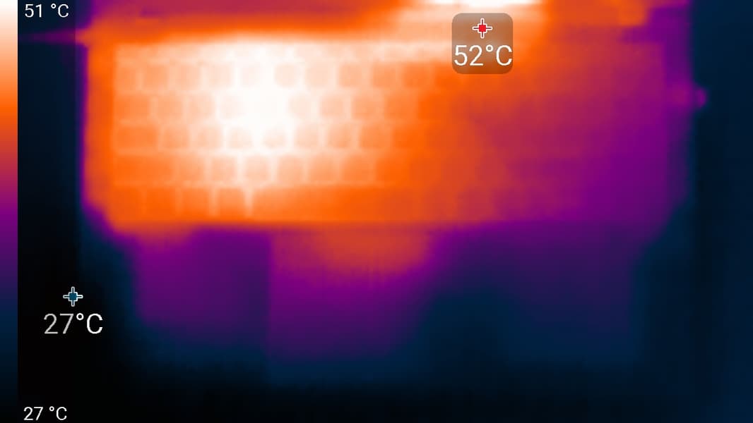 Внешняя поверхность матрицы черная жесткая и полуматовая (зеркальность хорошо выражена). Какие-либо специальные антибликовые покрытия или фильтр отсутствуют, нет и воздушного промежутка. При питании от сети или от батареи и при ручном управлении яркостью (автоматической подстройки по датчику освещенности нет) ее максимальное значение составило 314 кд/м² (в центре экрана на белом фоне). Если избегать прямого солнечного света, то такое значение позволяет как-то использовать ноутбук на улице даже летним солнечным днем.