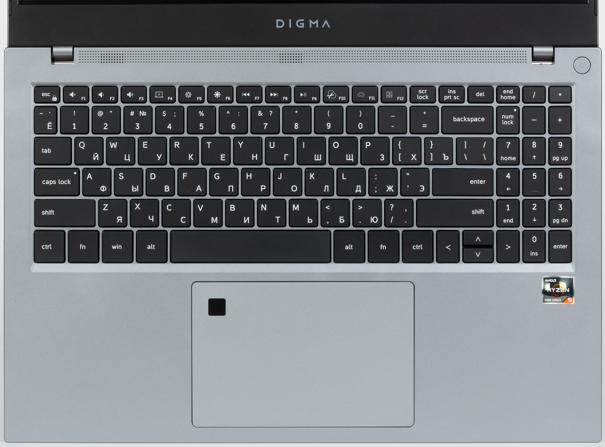 На сайте производителя Digma Pro Fortis M фигурирует в двенадцати модификациях, различающихся меж собой объемами оперативной памяти, вместимостью системного накопителя и моделями центрального процессора: AMD Ryzen 5 5600U, AMD Ryzen 3 5300U, Intel Core i7 10710U, Intel Core i5 10210U, Intel Core i3 10110U. Заметим, что это вычислители не последних поколений. Есть и другие признаки экономии в подходе к выбору комплектующих: SSD-накопитель M2 обладает интерфейсом SATA 6, а не PCIe, а беспроводной адаптер поддерживает стандарт 802.11ac, а не 802.11ax.