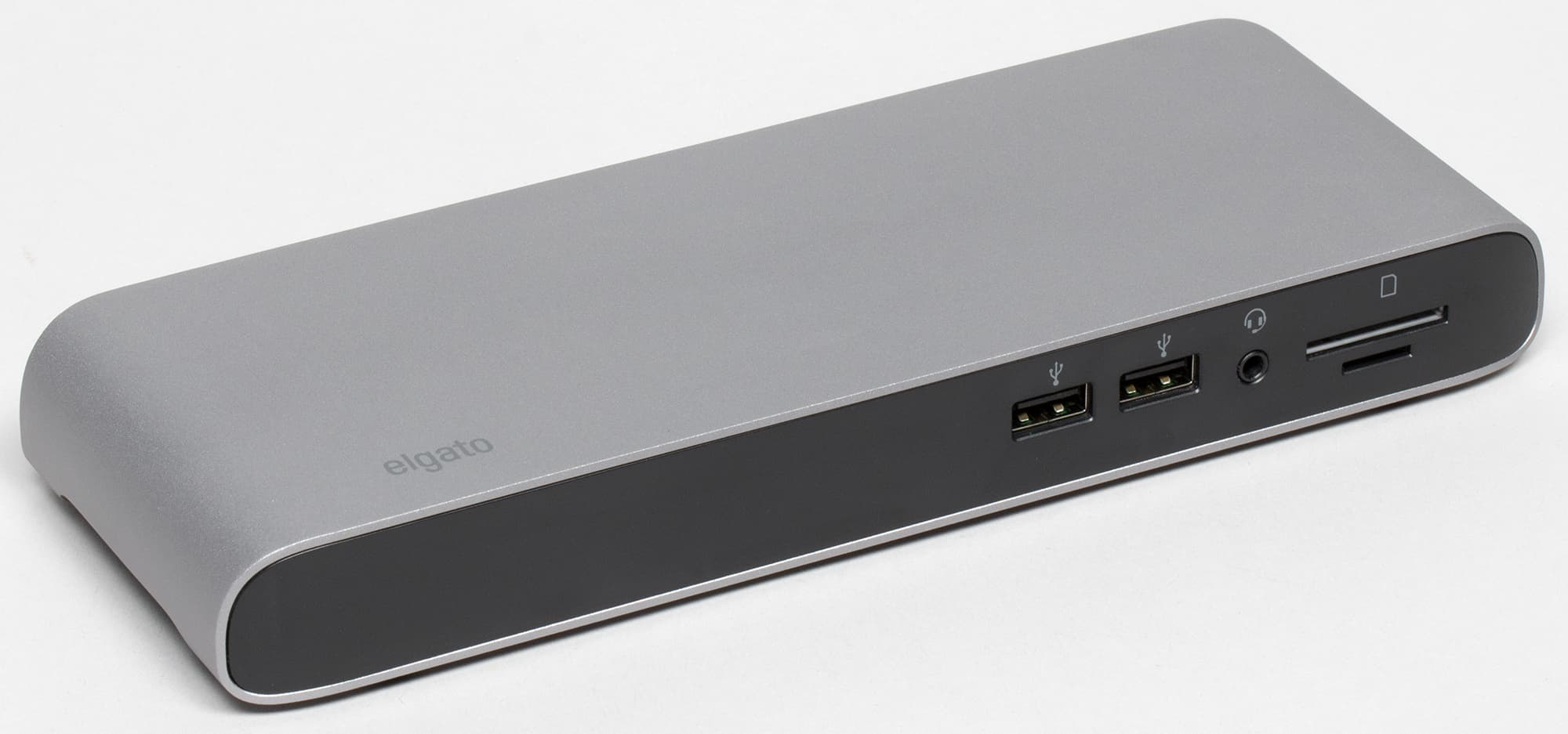 Устройство сохранило тот же стильный дизайн, свойственный всем продуктам Elgato, однако выглядит куда серьезнее, поскольку его размеры составляют уже 220×80×29 мм. Зато на передней грани сразу же видны два разъема USB-A, два разъема под карты памяти (SD и microSD) и разъем для подключения гарнитуры. Всем им тут самое место.