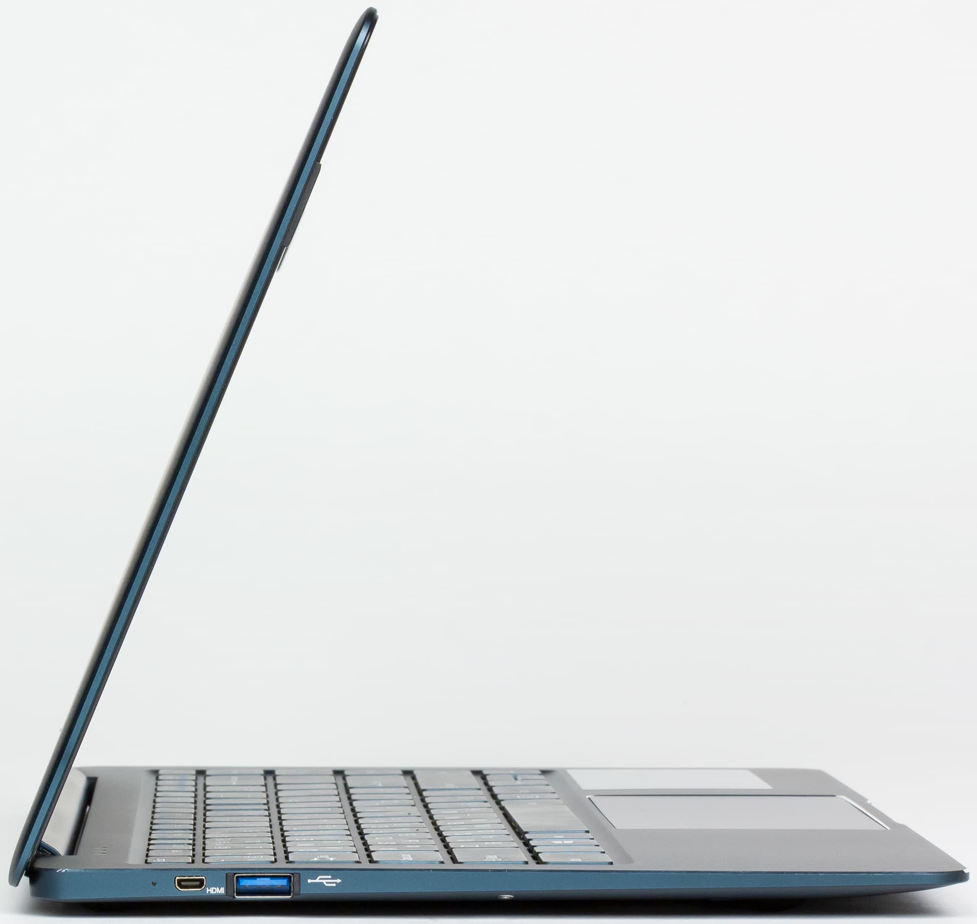 Заявленная толщина корпуса составляет 10 мм, однако тут нужно иметь в виду, что речь идет о китайских миллиметрах. Общепринятые миллиметры чуть меньше, и их получается не 10, а 14. Но даже при толщине корпуса в 14 мм ноутбук очень тонкий.