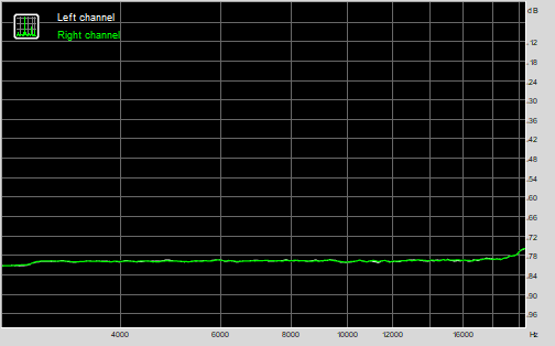 Традиционно, для оценки выходного звукового тракта, предназначенного для подключения наушников или внешней акустики, мы проводим тестирование с использованием внешней звуковой карты Creative E-MU 0204 USB и утилиты RightMark Audio Analyzer 6.3.0. Тестирование проводилось для режима стерео, 24-бит/44 кГц. По результатам тестирования аудиотракт получил оценку «Очень хорошо».