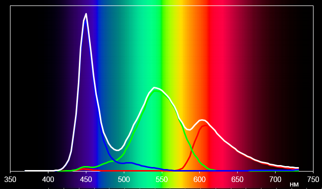 Светофильтры ЖК-матрицы здесь типичные. Спектры зеленого и красного цветов немного перекрываются.