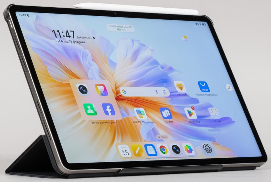 Honor Pad 9 — планшет с крайне сдержанной ценой, но очень впечатляющем списком интересных особенностей. В первую очередь привлекают внимание, конечно же, большой 12,1″ экран, металлический корпус и возможность работы с фирменной обложкой-клавиатурой, которая превращает его в удобный инструмент для учебы.