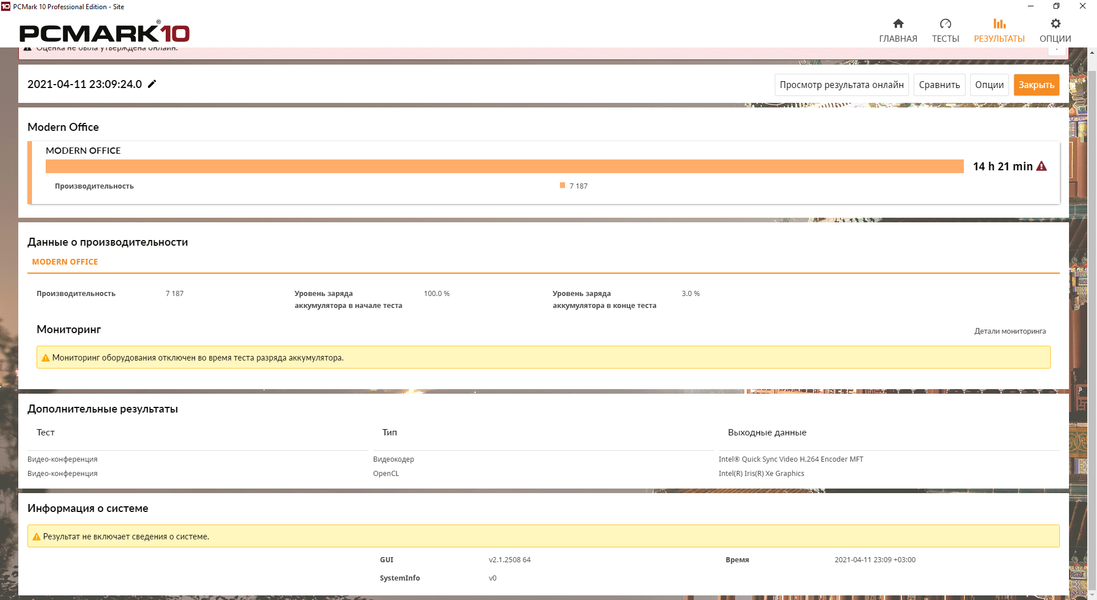 И если, опять же, сравнить эти результаты с предыдущими, то легко убедиться, что встроенная в центральный процессор графика в Honor MagicBook 14 (2021) производительнее, чем в таком же ноутбуке с процессором AMD Ryzen 5 4500U (Radeon Vega). Впрочем, к вопросу производительности встроенного графического ядра мы планируем еще вернуться, чтобы проверить его возможности в 3D-играх в одной из следующих статей.