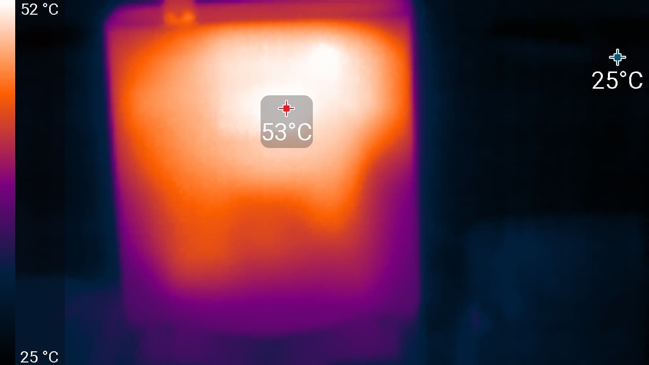 Ниже приведены термоснимки, полученные после долговременной работы ноутбука под максимальной нагрузкой на CPU и GPU (профиль Производительность; используется комплектный блок питания):