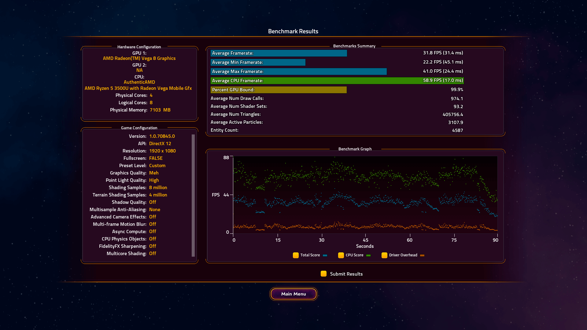 После этого бенчмарк удалось пройти с результатом 31 AVG FPS и 19 min FPS (исключив из лога с результатами аномальные минимальные значения).