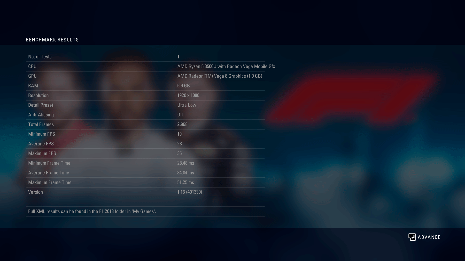 | F1 2018 | Август 2018 г. | 1920х1080 | Минимальные | 28 | 19 |