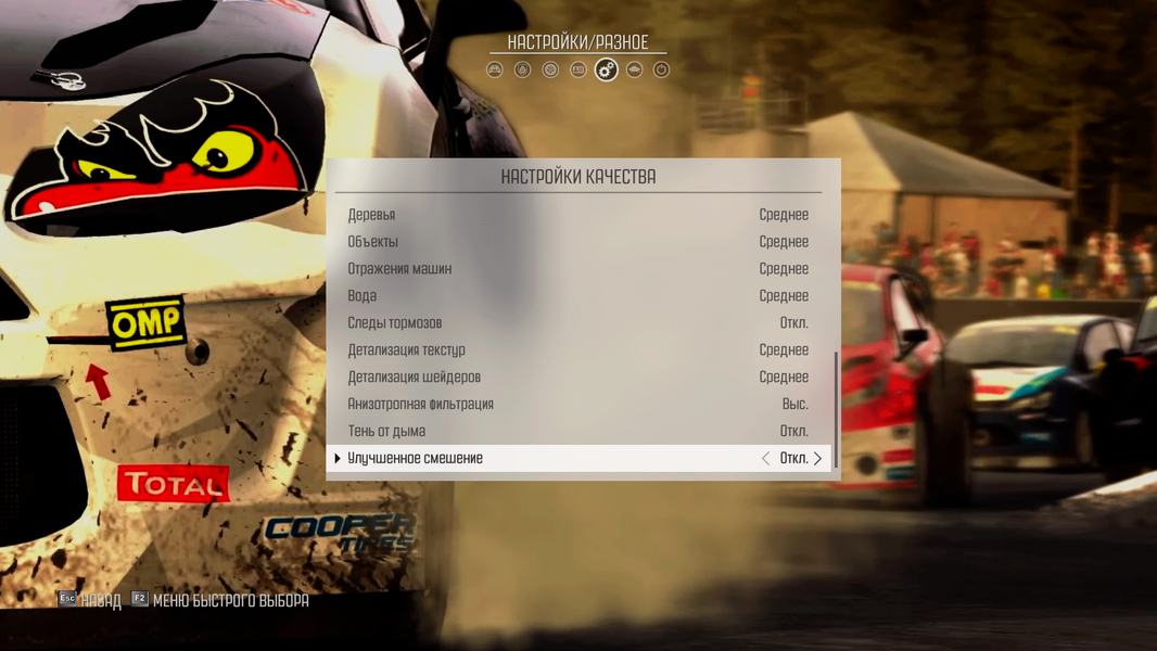 Сразу после своего появления в начале 2015 года автосимулятор DiRT Rally компании Codemasters обрёл популярность не только из-за реалистичной физики, но и отменной графики. При этом нельзя сказать, что игра стала проблемой даже для видеокарт уровня GeForce GTX 960, не говоря про флагманские для того времени GeForce GTX 980 Ti или Titan, поэтому настройки можно было выкручивать на максимум. Однако, чтобы AMD Radeon Vega 8 с одним гигабайтом видеопамяти смогла обеспечить в этой игре приемлемый уровень производительности нам пришлось снизить уровень настроек до среднего, а также отключить большинство эффектов.