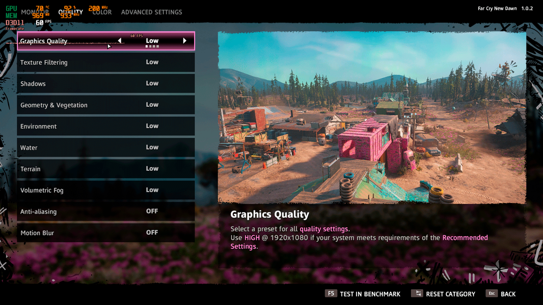 Далее у нас на очереди игра начала 2019 года Far Cry New Dawn. Для прохождения теста на Honor MagicBook 14 пришлось минимизировать настройки, отключить сглаживание и туман.