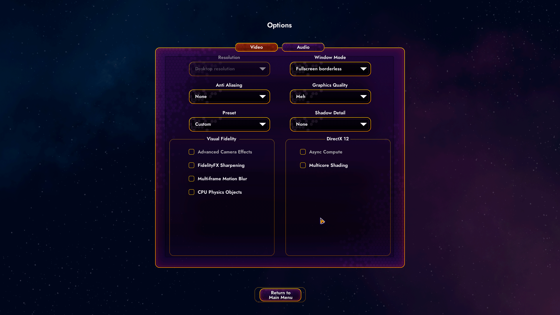 И ещё одна игра, вышедшая 1,5 года назад, – Star Control: Origins. Здесь мы также были вынуждены минимизировать настройки качества графики и отключить все доступные эффекты.