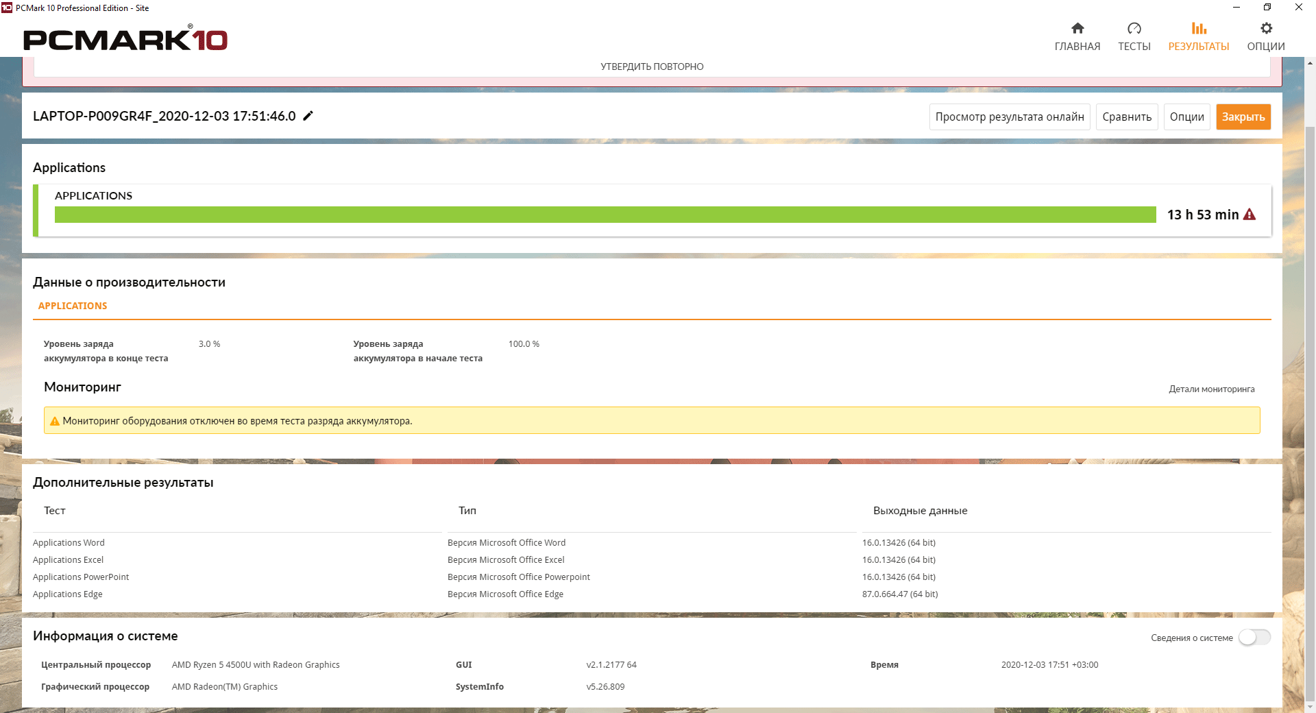 Ну, вот, в общем-то, и всё с играми и тестами в целом. Теперь протестируем автономность ноутбука.