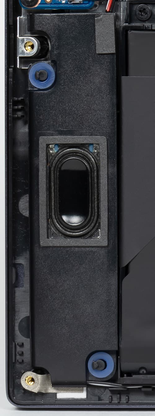 Аудиосистема ноутбука также сохранена на прежнем уровне и основана на кодеке Realtek ALC256, выводящем звук на два стереодинамика в основании ноутбука.