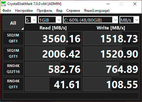 Этот фактор оказал влияние и на температуру накопителя, которая снизилась на те же 4 °C. Уровень шума ноутбука в данном режиме работы уменьшился, но все же бесшумным, как в режимах без нагрузки, ноутбук не стал.