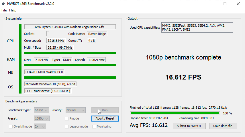 Отметим, что ноутбук успешно прошел все тесты методики, однако в одном из них (создание слайд-шоу из фотографий в Photodex ProShow Producer) по какой-то причине зависало окно с отображением прогресса (видеодрайвер?), так что получить автоматизированным способом результат этого теста не удалось. Посмотрим, будет ли такая ситуация повторяться в дальнейшем, и, возможно, обновим методику, чтобы избегать подобных проблем. Впрочем, на интегральном показателе производительности пропуск одного теста сказался минимально, и мы можем констатировать, что в серьезных профессиональных задачах ноутбук Honor MagicBook 14 примерно вдвое медленнее достаточно мощного настольного компьютера среднего уровня с процессором Intel Core i5-9600K. Это, конечно, невысокий, но не провальный итог.