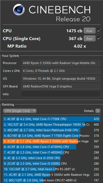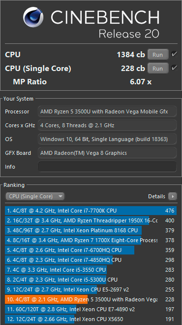 | Процессор | AMD Ryzen 5 3500U (4 ядра/8 потоков, 2,1—3,7 ГГц, L3-кэш 4 МБ, TDP 12—35 Вт) | |
