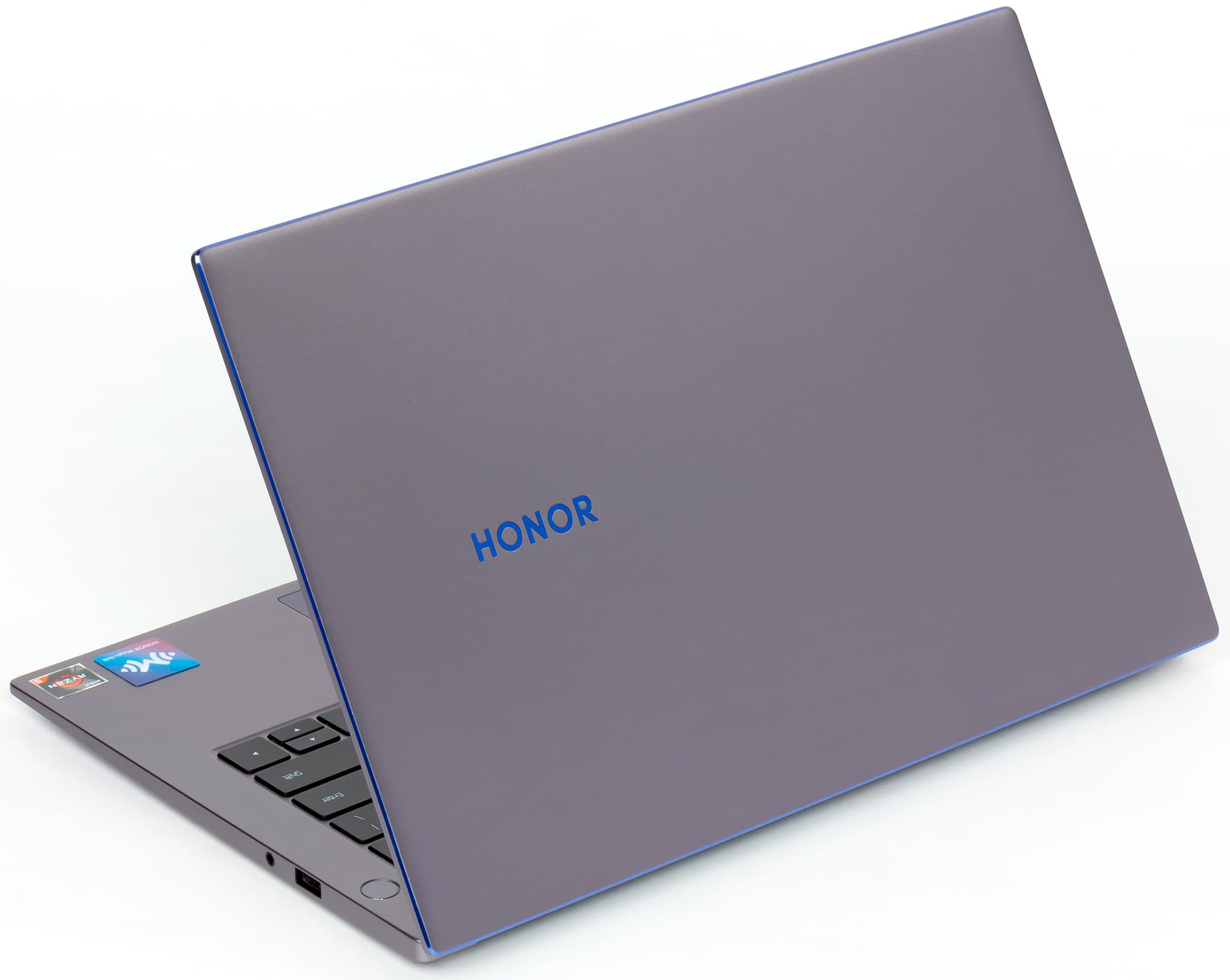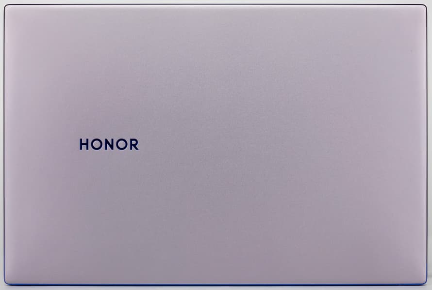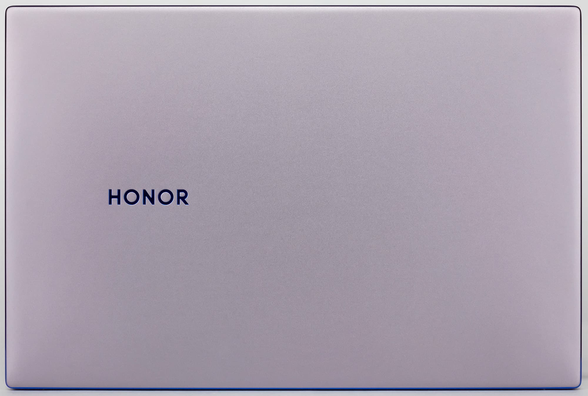 На крышке ноутбука нанесена лаконичная надпись «Honor», меняющая цвет под разными углами. Подсветки у нее нет.