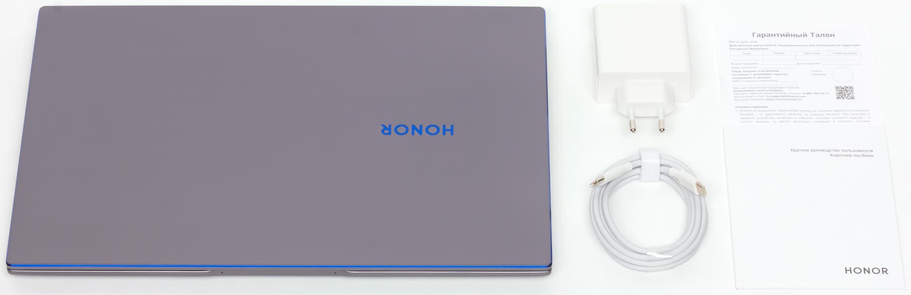 Honor MagicBook 14 комплектуется адаптером питания мощностью 65 Вт (20,0 В; 3,25 A) с выходным разъемом USB Type-C.