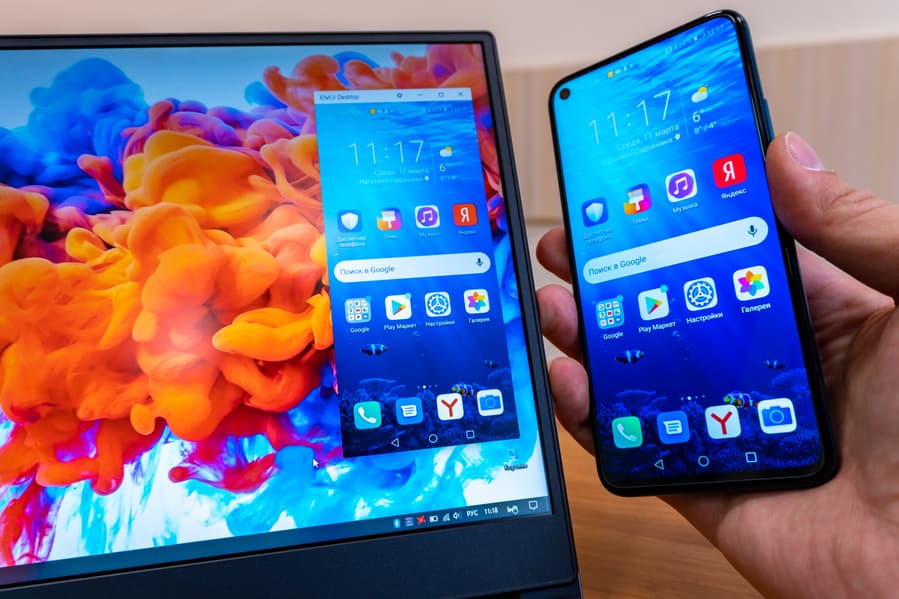 Во-вторых, поддерживается зеркалирование экрана смартфона — он показывается в окне и с ним можно взаимодействовать курсором мыши. Задержка при этом небольшая, меньше секунды, изображение полноцветное, а артефакты появляются очень редко.
