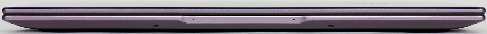 На переднем торце ноутбука можем отметить только две маленькие точки — это встроенные микрофоны для записи звука.