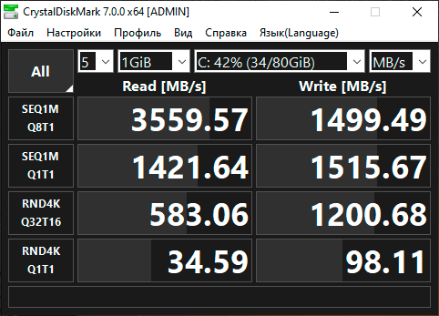 | Скорость копирования данных, c | 42,62 | 35,43 |