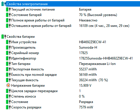 | Аккумулятор | 56 Вт·ч (3665 мА·ч), литий-полимерный | |