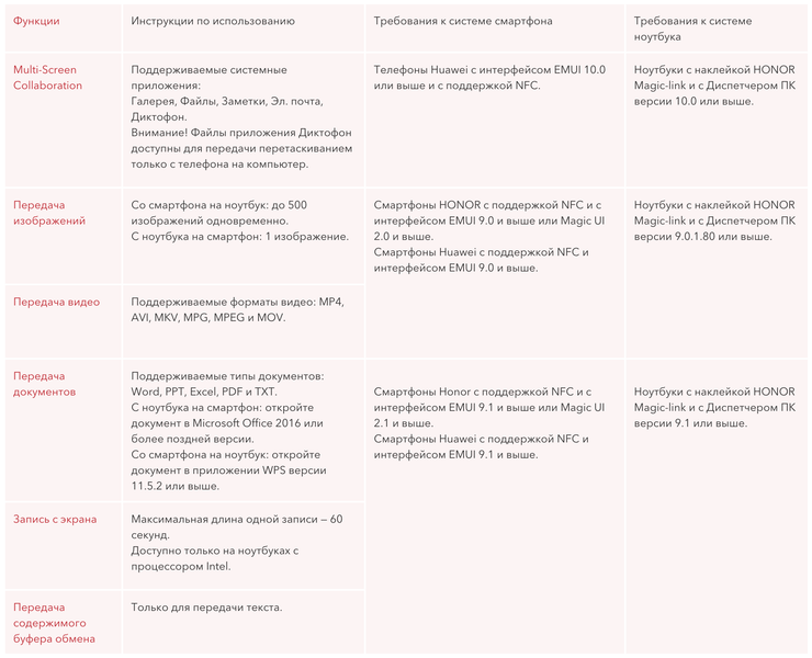 Поддержка конкретных функций Magic-link со стороны смартфона зависит от наличия модуля NFC и от версии установленной на нем оболочки EMUI/Magic UI: