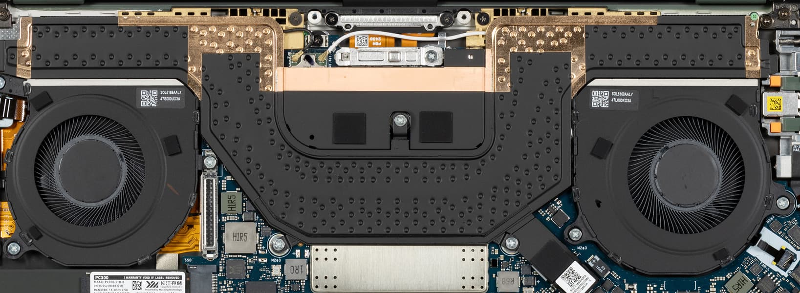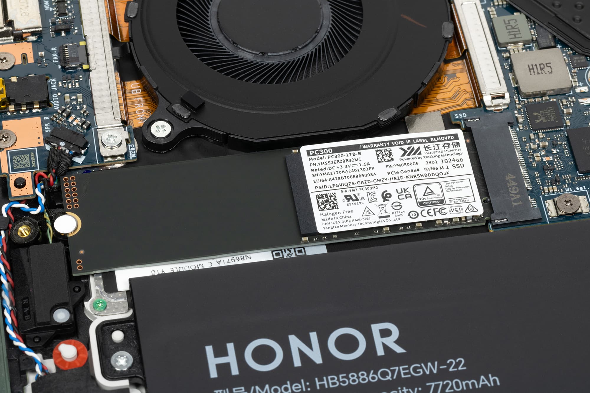 Систему охлаждения в Honor MagicBook Art 14 называют инновационной и с элементами искусственного интеллекта. На самом деле решить вопрос охлаждения центрального процессора и сопутствующих ему элементов в столь тонком корпусе — задача не тривиальная. Тем не менее, в Honor с ней успешно справились.