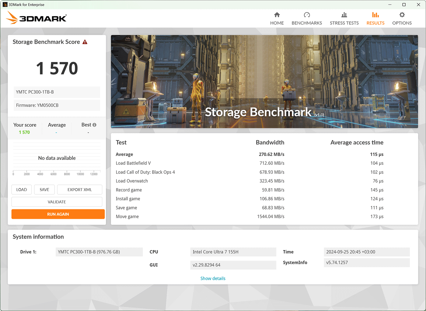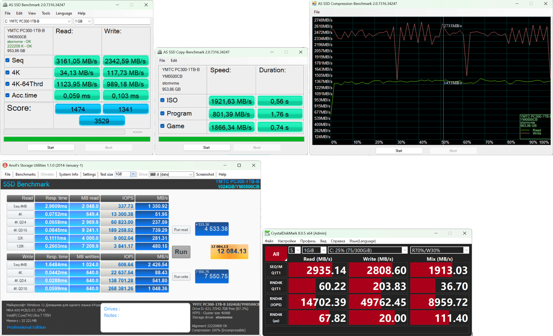 | Накопитель | 1×SSD 1 ТБ (YMTC PC300-1TB-B), M.2 2280, PCIe 4.0 x4 | |