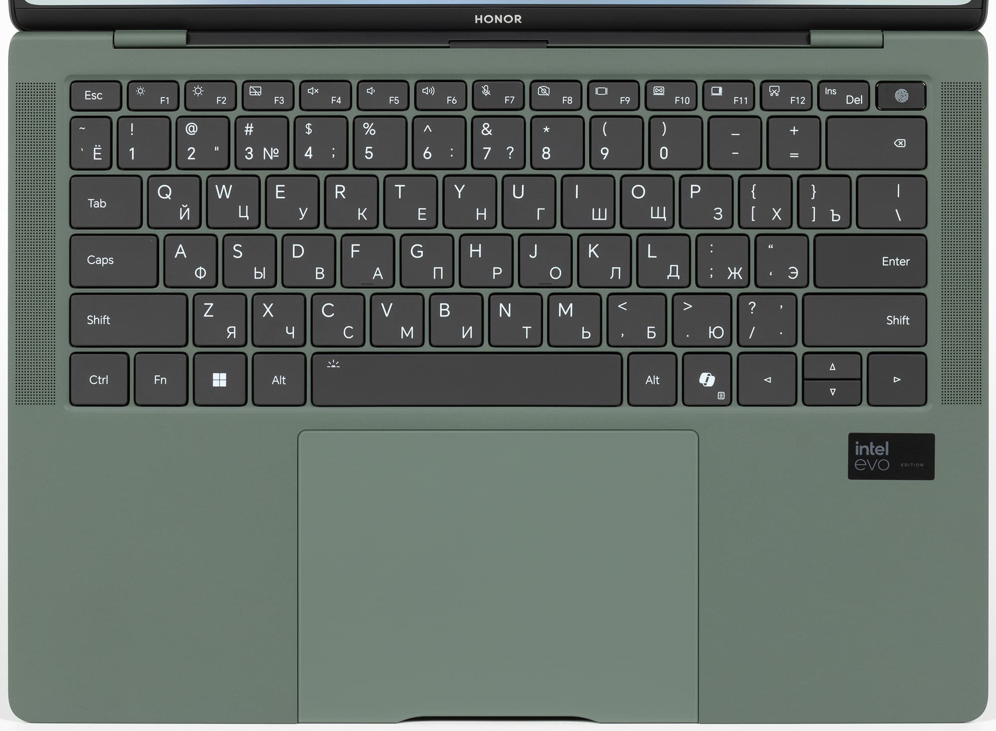 Honor MagicBook Art 14 оснащен большой и удобной клавиатурой, пусть и без цифрового блока (на 14-то дюймах!).