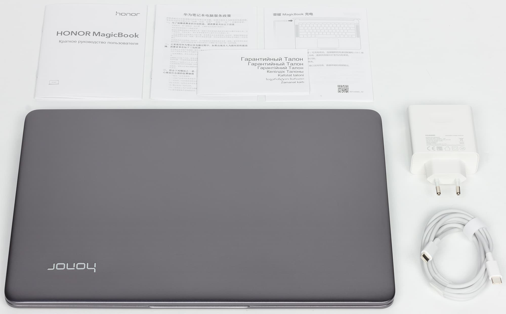 В комплекте прилагается адаптер питания мощностью 65 Вт, гарантийный талон и руководство пользователя.