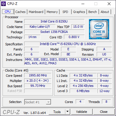 | Процессор | Intel Core i5-8250U | |