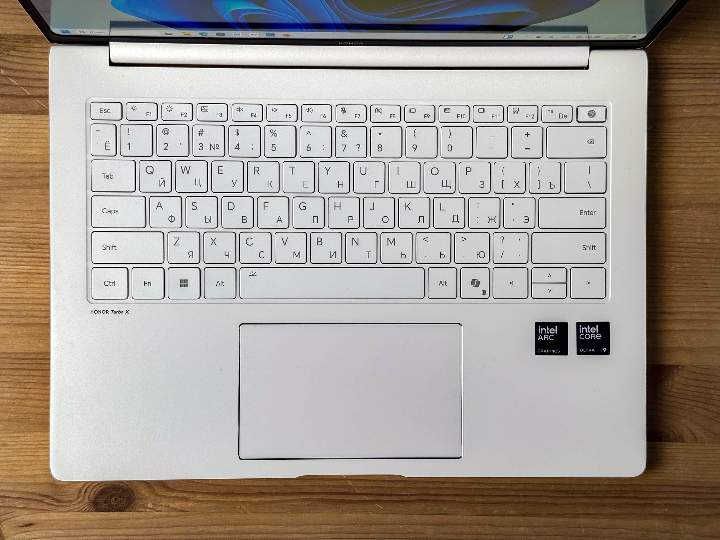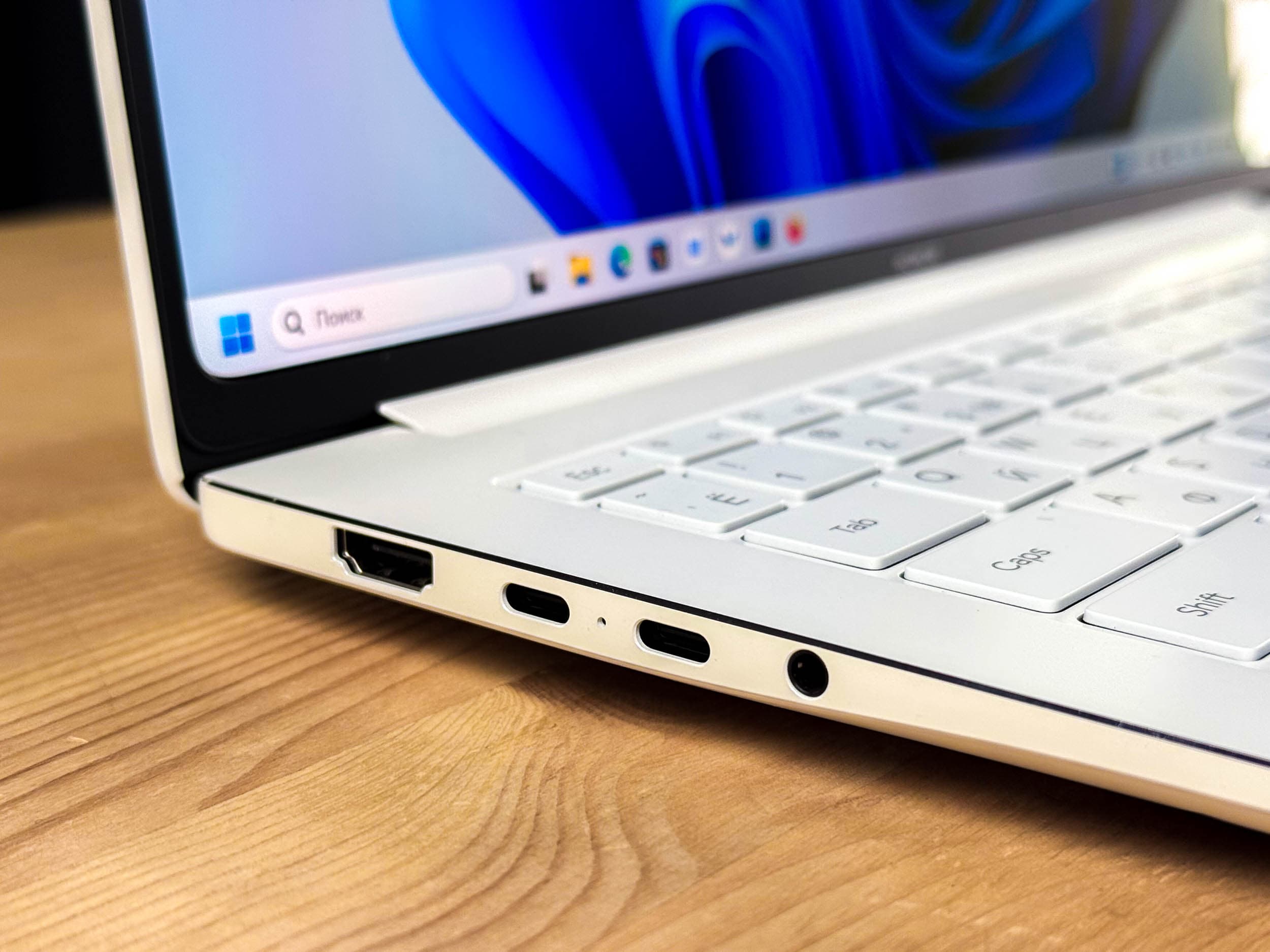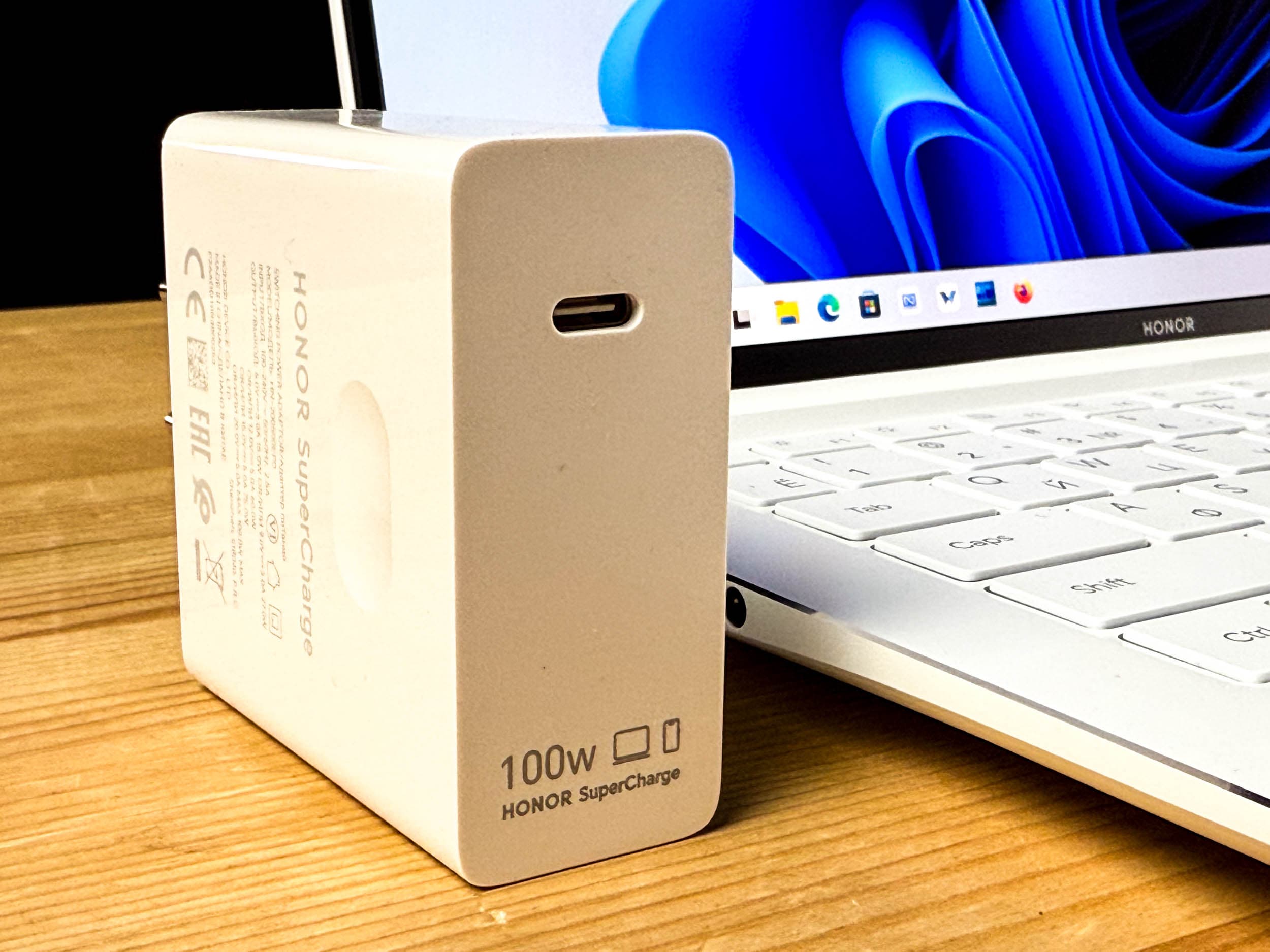 В коробке, если не считать бумажный набор, только ноутбук, кабель USB-C—USB-C и зарядное устройство мощностью 100 Ватт. Последнее довольно массивно — весит 230 граммов. Но есть шанс, что необходимости постоянно носить его с собой не будет, потому что ноутбук получил аккумулятор ёмкостью 92 Вт·ч, то есть даже больше, чем у 16-дюймовой прошлогодней модели. Но насколько он прожорлив в деле — узнаем после тестов. Honor же в описании модели говорит про «рекордную» среди своих же ноутбуков автономность — до 12 часов. У Honor точно были модели и с большей (в часах) заявленной автономностью, но, конечно, в любом измерении важно, как именно измеряют. Может быть, у Honor методика изменилась.