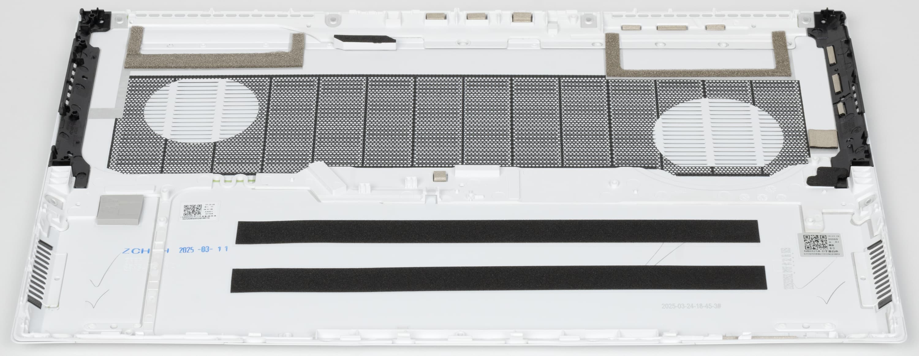 Задняя опора протянулась почти во всю ширину днища, две передние представляют собой штрихи с небольшим возвышением. Входные решетки воздухозаборников располагаются под вентиляторами системы охлаждения. На скосах справа и слева имеются решетки динамиков.
