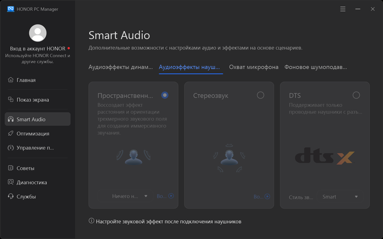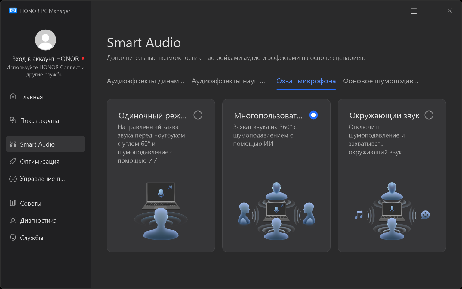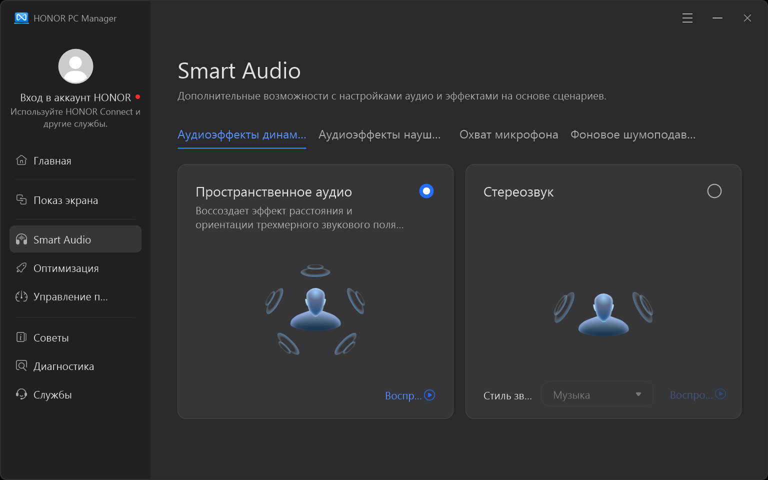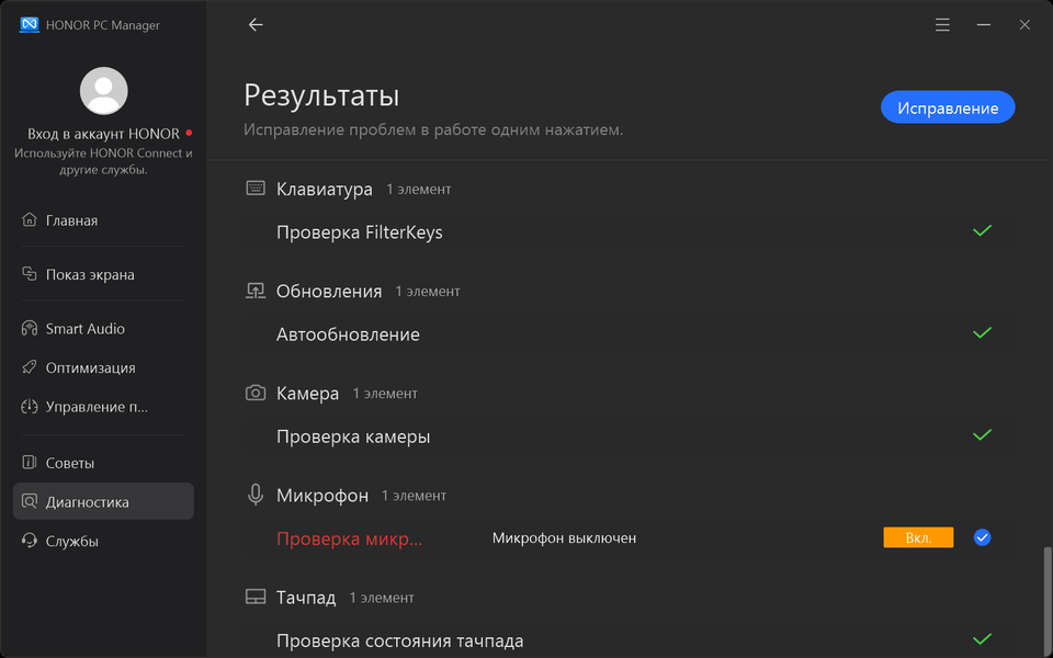 Фирменная утилита Honor PC Manager представляет наибольшую ценность при испытаниях машины, поскольку дает возможность настраивать разные параметры и выбирать сценарии (профили, пресеты) работы с разными уровнями производительности.